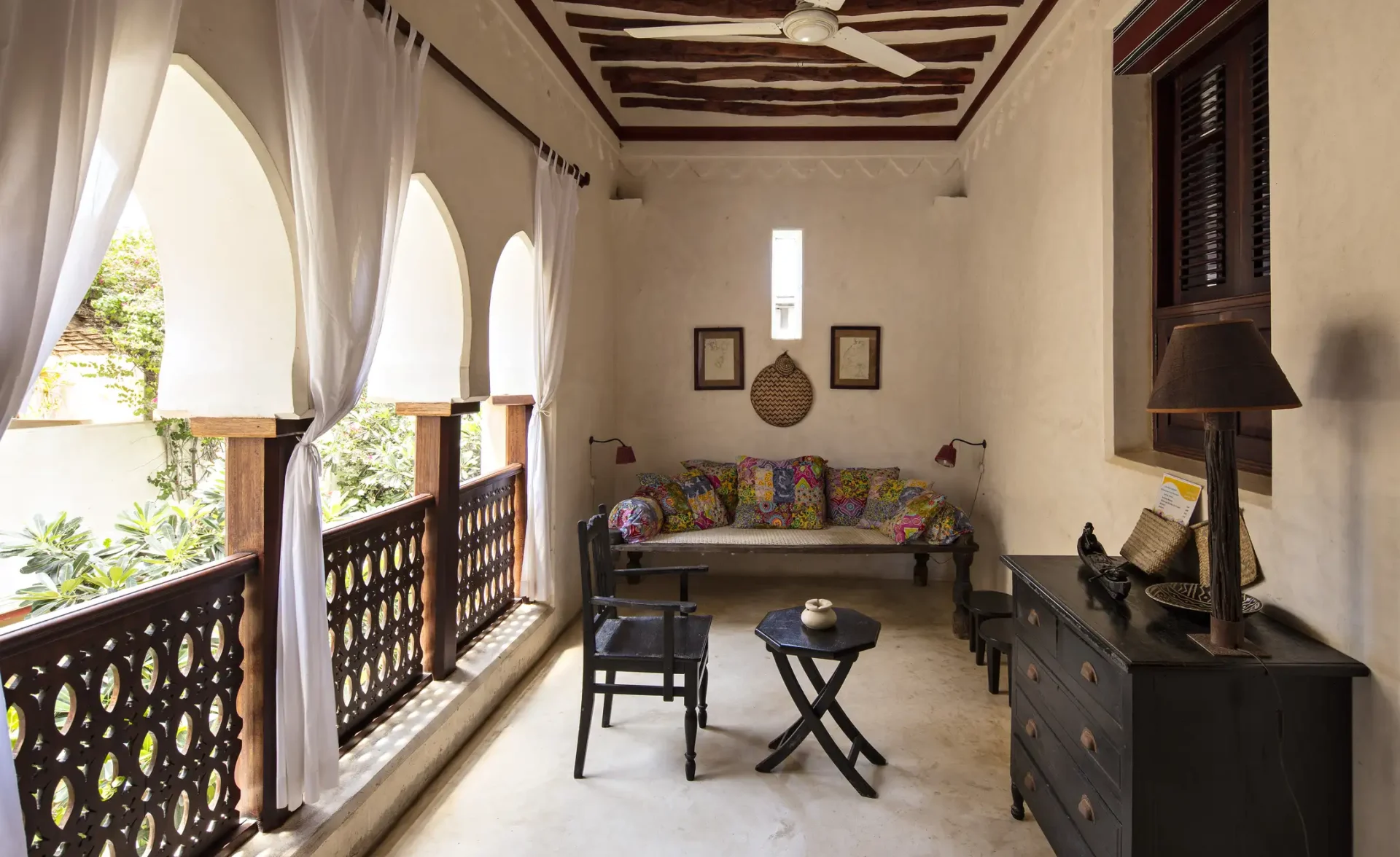 Beautifully appointed suite overlooking the tranquil courtyard and pool. Thoughtfully furnished with hand-carved details and traditional Swahili design, elegantly blending cultural character with comfort.